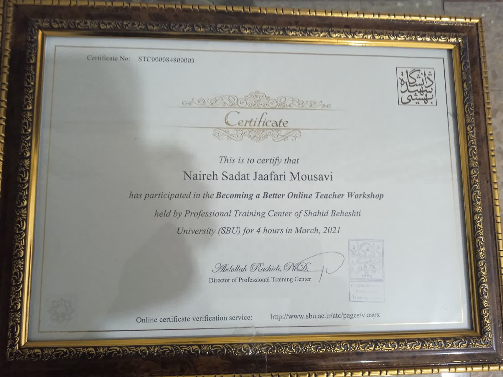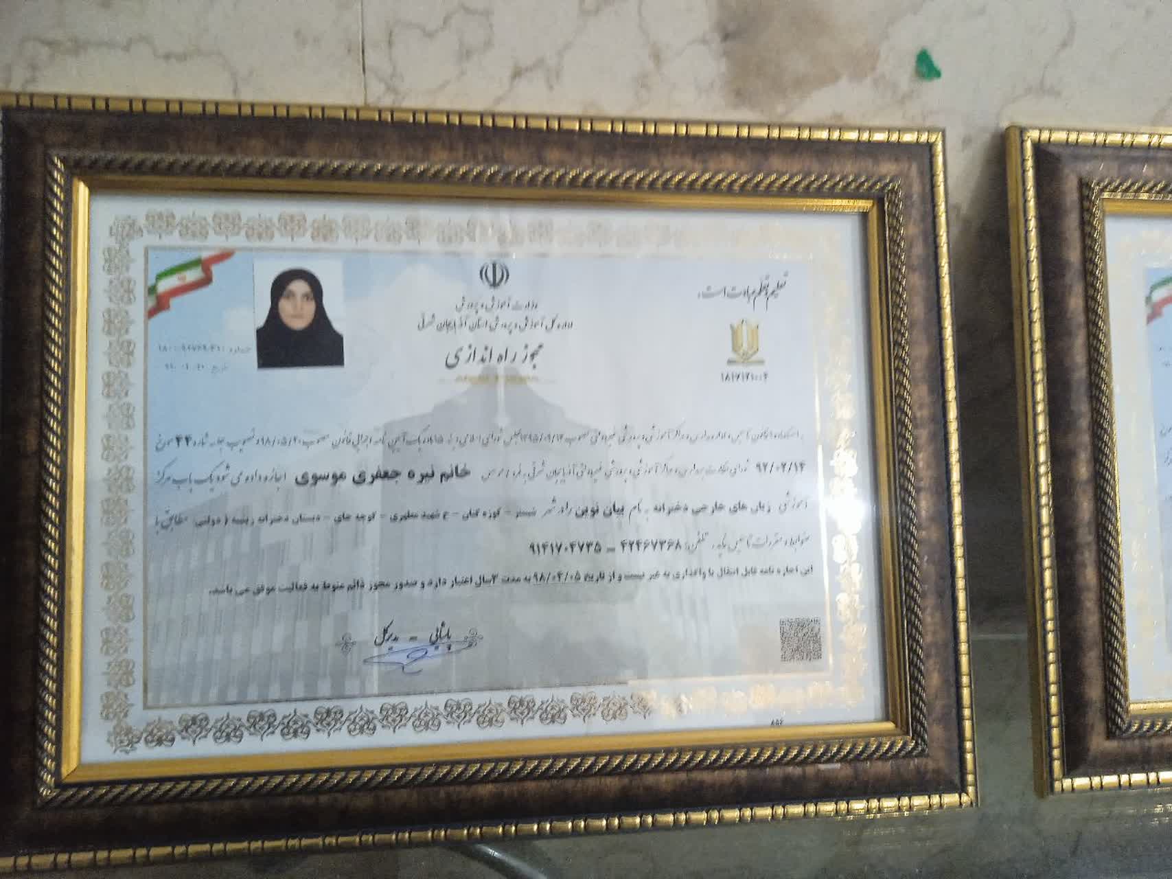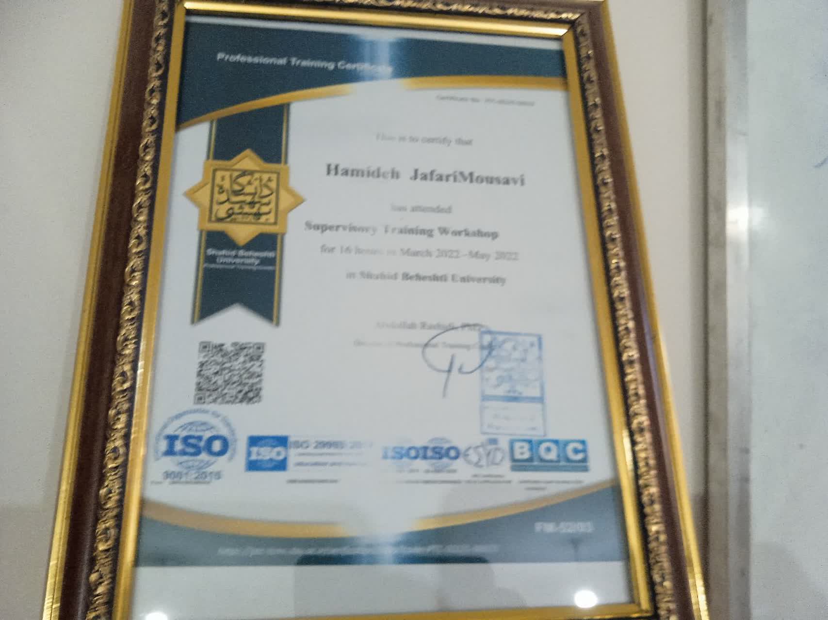 خانم حمیده جعفری موسوی( گواهی نامه شرکت در دوره سوپروایزری آموزشگاه ها)